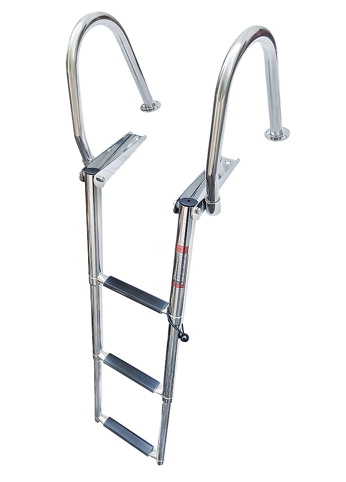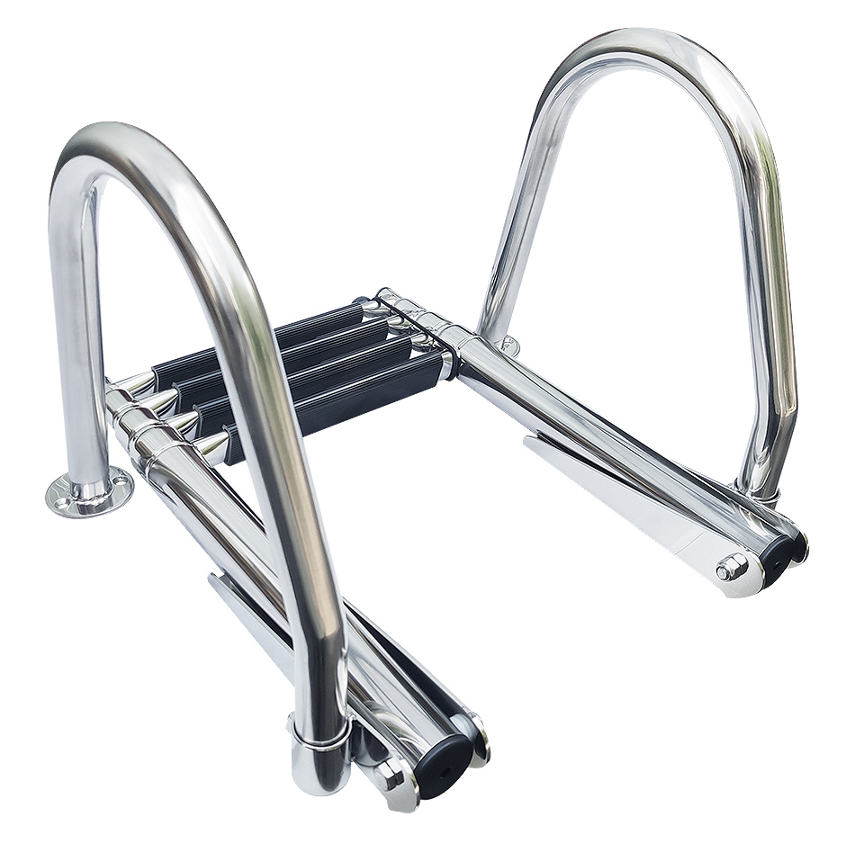 Телескопический трап с поручнями для удобства подъема и спуска. Нержавеющая сталь. 3 или 4 ступени.