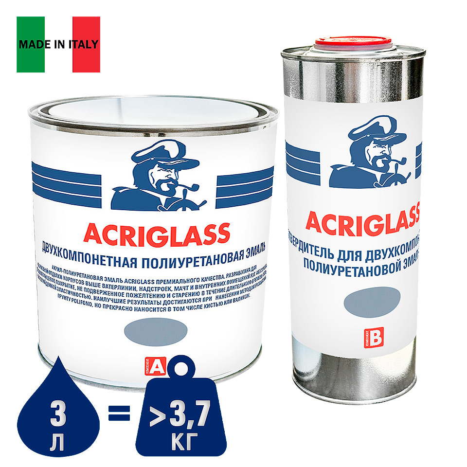 Акрил-полиуретановая эмаль ACRIGLASS премиального качества. Разработана для финишной отделки корпусов выше ватерлинии, надстроек, мачт и внутренних помещений яхт. Обеспечивает высокоглянцевое покрытие, не подверженное пожелтению и старению в течение длительного времени. Обладает непревзойденной эластичностью.