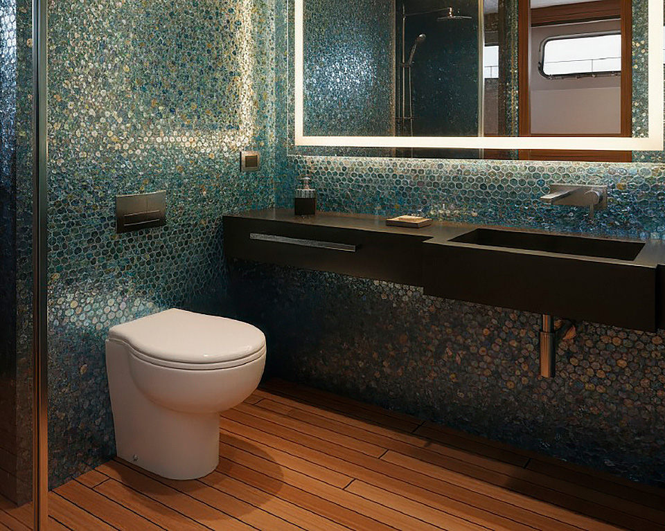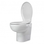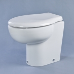 Новинка! Компактный, яхтенный унитаз повышенной комфортности с эффектом вакуумного смыва (высокоскоростная, электрическая помпа), с улучшенным внешним видом. Смыв и ополаскивание производятся нажатием кнопки. В отличии от классических электрических унитазов, смыв очень короткий и тихий. Унитаз расходует очень малое количество воды на смыв (1-1,5 л), что позволяет реже опорожнять фекальный бак. Новая конструкция чаши из стекловидной керамики делает этот унитаз не только очень комфортным, но и весьма изящным. Кроме того, это позволяет использовать любые виды чистящих средств, включая порошковые. Вся его электрическая начинка спрятана внутри корпуса, поэтому внешне он ничем не отличается от привычного домашнего унитаза. Все металлические детали и крепеж выполнены из нержавеющей стали и меди (корпус помпы). Специальная мацераторная (измельчающая) помпа обеспечивает выброс фекальных масс на высоту до 5 метров, поэтому унитаз может быть смонтирован как выше, так и ниже ватерлинии (в последнем случае необходима установка вентилируемого сифонного колена). Опорожнение осуществляется за борт или в фекальную цистерну. Для подачи воды на смыв следует приобрести электромагнитный клапан (при наличии на борту воды под давлением) или отдельную водоподающую помпу.
