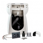 Электрический яхтенный унитаз с эффектом вакуумного смыва. Работает значительно тише традиционных аналогов. Обладает очень тихим и коротким циклом смыва, расходуя при этом очень незначительное количество воды (1-1,5 л на смыв), что позволяет реже опорожнять фекальный бак. Керамическая чаша унитаза может очищаться любыми видами чистящих средств, включая порошковые. Штатная помпа способна удалить стоки на расстояние до 70 метров от места установки унитаза (высота подъема — до 5 м). В отличие от традиционных унитазов не нагнетает самостоятельно воду для смыва, поэтому для работы требуется наличие на борту централизованной системы подачи воды под давлением (дополнительно необходимо приобрести электромагнитный клапан, управляющий подачей воды) или установка отдельной помпы для подачи воды на смыв.