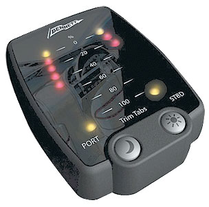 Панель с двумя светодиодными индикаторами, отображающими текущий угол наклона транцевых плит. Совместим со всеми комплектами транцевых плит производства «Bennett» (кроме плит с цилиндрами, имеющими три литых кольца на корпусе).