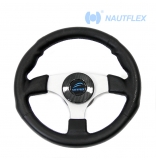 Рулевое колесо с полированными нержавеющими спицами. Обод диаметром 320 или 360 мм покрыт прочной полиуретановой оболочкой черного цвета. Ступица круглой формы имеет посадочный конус стандартного размера.