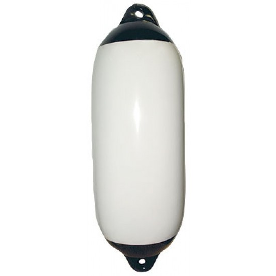 Пластиковый надувной кранец белого цвета с двумя черными рымами. Надутие кранцев осуществляется без использование иглы, только давлением воздуха!