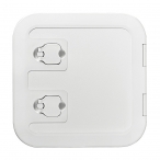 Смотровой лючок из белого пластика с резиновым уплотнителем.