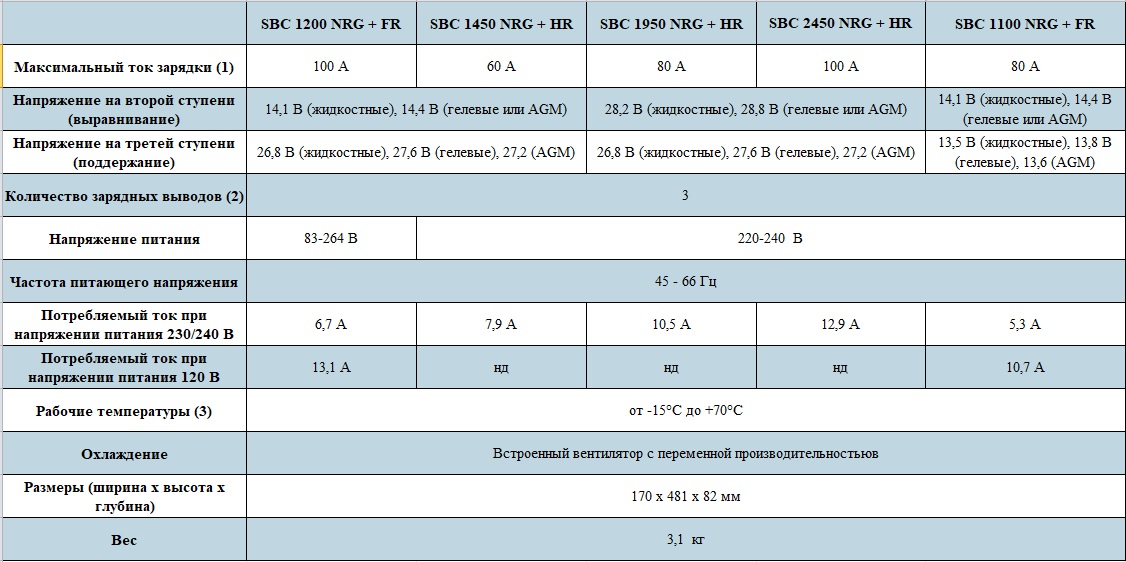 Зарядное устройство SBC 1450 NRG HR - предназначено для эффективного обслуживания 24-вольтовых аккумуляторных систем. Устройство обеспечивает суммарный ток заряда до 60А, распределяя мощность между тремя независимыми выходами. Интеллектуальная система управления автоматически подбирает оптимальные параметры заряда для свинцово-кислотных (WET, MF, AGM, GEL) и литиевых (LiFePO4) АКБ.
