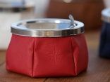 Пепельница нескользящая, красная, нержавеющая сталь и кожа
