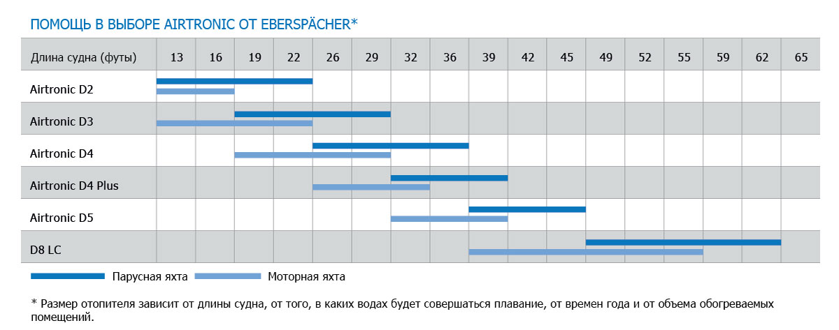 Отопители Eberspächer для яхт и катеров создают уютный микроклимат в каюте для вас и ваших пассажиров. Вы сами задаете нужную температуру, а отопитель Eberspächer быстро, надежно и очень тихо обеспечивает комфорт. Они также обеспечивают постоянную циркуляцию воздуха и снижают влажность воздуха в салоне. Каждый отопитель Airtronic имеет электронный регулятор числа оборотов с точной подстройкой и благодаря этому работает бесшумно и экономично. Благодаря микропроцессору системауправляется исключительно электроникой. Функции нагрева контролируются постоянно. Система диагностики облегчает техобслуживание.