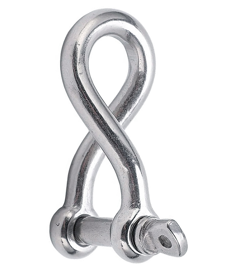 Такелажная скоба из полированной нержавеющей стали, повернутая на 90 градусов. Изготовлена методом ковки.Материал: нержавеющая сталь. Калибр: 4, 5, 6, 8, 10, 12 мм. Производитель: Китай