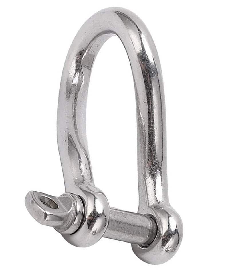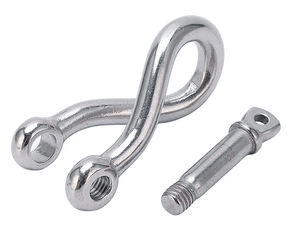 Такелажная скоба из полированной нержавеющей стали, повернутая на 90 градусов. Изготовлена методом ковки.Материал: нержавеющая сталь. Калибр: 4, 5, 6, 8, 10, 12 мм. Производитель: Китай