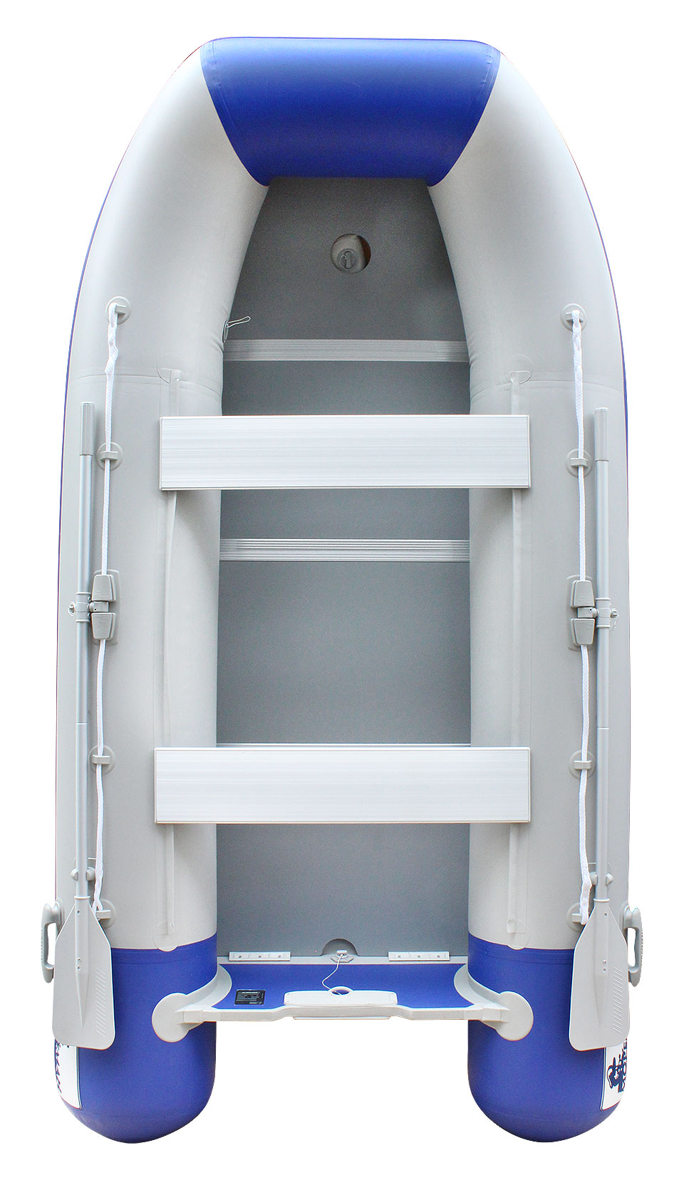 Надувная лодка из ПВХ-ткани. Поставляется в двух вариантах: с разборными фанерными пайолами (полом) или с надувными пайолами высокого давления. Оба варианта лодок имеют надувные центральные кили, что придает днищу v-образные обводы, улучшающие стабильность на курсе и мореходность в условиях волнения. Значительный диаметр баллонов в кормовой части, а также форма их торцевых оконечностей придают корме дополнительную плавучесть, что позволило увеличить свободное пространство внутри лодки за счет сдвигания транца назад. Высокая плавучесть кормы также позволяет без опаски устанавливать тяжелые четырехтактные двигатели. Вместе с тем, ближе к носовой части лодок диаметр баллонов постепенно уменьшается, что придает лодке элегантный внешний вид и позволяет без ущерба для мореходности снизить вес. Транец лодки с двух сторон оклеен лодочной ПВХ-тканью, которая сохранит опрятный внешний вид на долгие годы. Банки (скамейки) крепятся к ликтросу, закрепленному вдоль бортов лодки, благодаря чему они легко могут быть установлены в любой точке по длине лодки без применения инструментов. Лодка имеет 5-летнюю гарантию на ПВХ-ткань баллонов и швы и 2-летнюю гарантию на аксессуары.