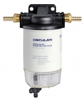 Топливный фильтр с кронштейном из никелированной бронзы для крепления к корпусу судна и водоотделителем с отстойником из прозрачного пластика. Рассчитан на потребление топлива до 100 литров в час. Варианты для бензина и дизельного топлива. Размеры: 230 (высота), 93 (диаметр) мм.