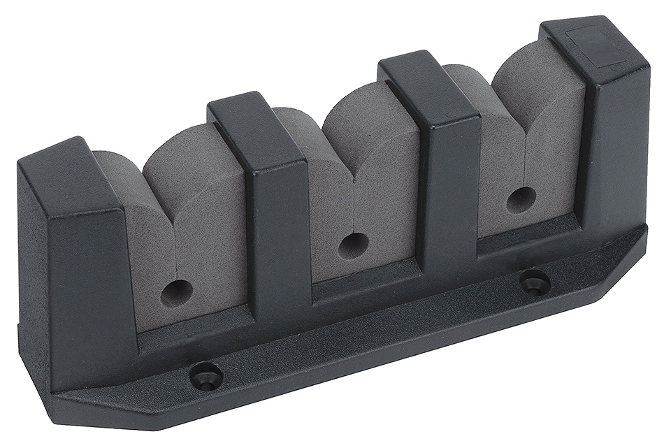 Кронштейны из пластика и неопрена для крепления удилищ в походном положении. Мягкие вспененные неопреновые вставки надежно закрепляют удилище, не повреждая его. Имеются модели на 3 и 5 удилищ. Крепятся в любом положении к любой плоской поверхности винтами или саморезами. Страна-производитель: Тайвань.