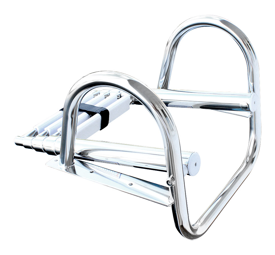 Телескопический трап с рукоятками, облегчающими спуск в воду и подъем из воды. Изготовлен из стойкой к коррозии нержавеющей стали AISI 316. Длина (разложенный/сложенный): 889/370 мм (3 ступени), 1156/394 мм (4 ступени). Ширина: 360 мм (3 ступени), 375 мм (4 ступени). Поставщик: "Osculati", Италия.