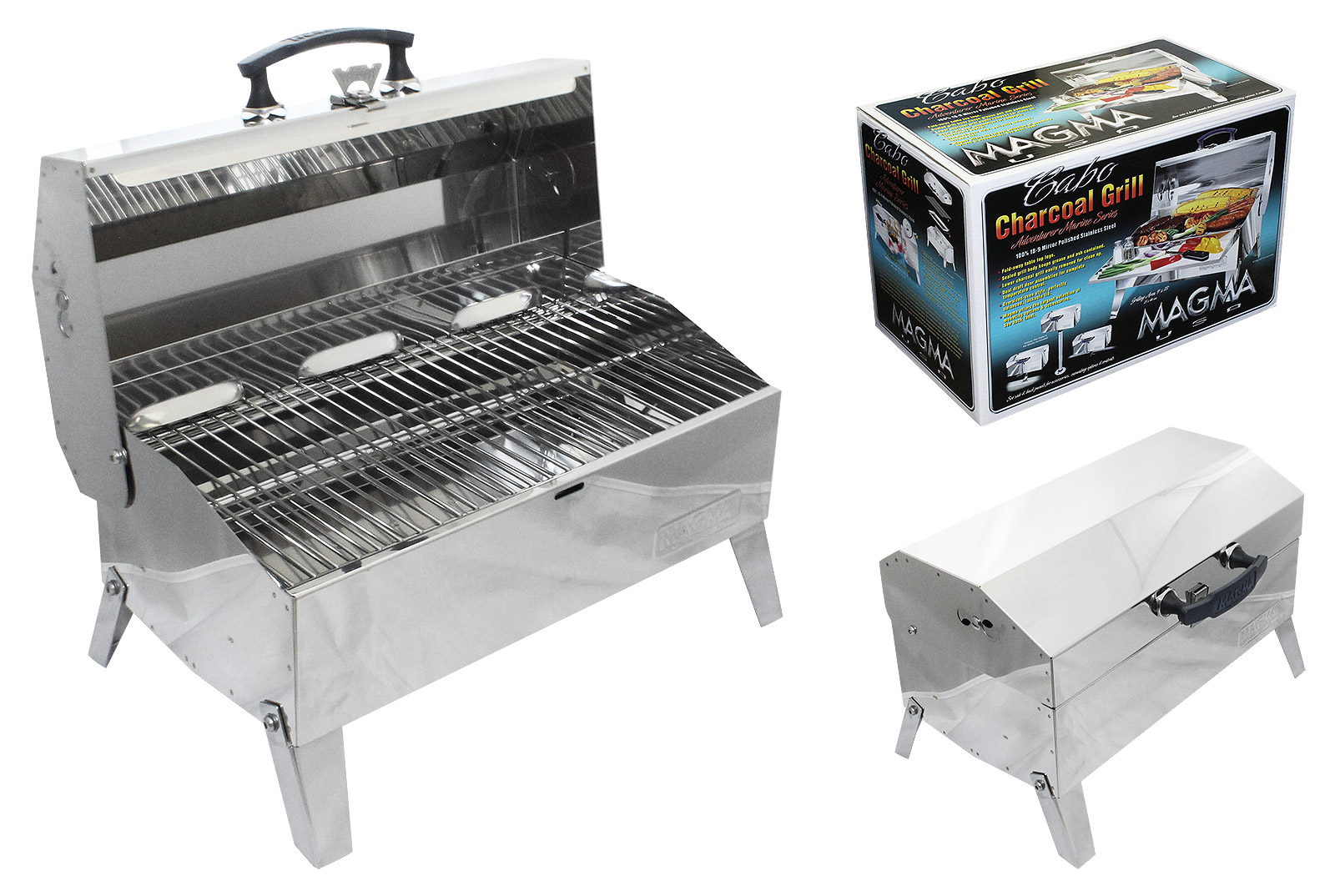 Мангал прямоугольной формы. Решетка большого размера (23х46 см) позволяет готовить сразу на большую компанию! Складывающиеся ножки для облегчения хранения. Нержавеющая сталь отличного качества обеспечивает мангалам долгий срок службы. Две модели — для готовки на углях и для готовки на газу (используются портативные газовые баллончики типа camping gaz).