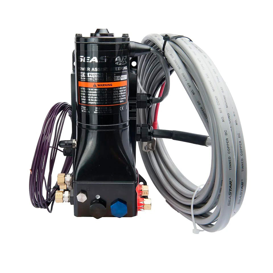 Электрогидравлический усилитель для гидравлических систем рулевого управления «SeaStar». Единственный гидроусилитель, доступный для владельцев лодок с мощными подвесными моторами! Облегчает управление судном, резко сокращая усилия на рулевом колесе. Легко монтируется между гидронасосом (рулевой машинкой) и гидроцилиндром рулевых систем «SeaStar 1,4», «SeaStar 1,7», «SeaStar 2,0» (рекомендуется), а также «SeaStar 2,4» (допускается). Применяется как с подвесными, так и со стационарными двигателями. Может работать в паре с авторулевым. При обесточивании не выводит рулевую систему из строя.