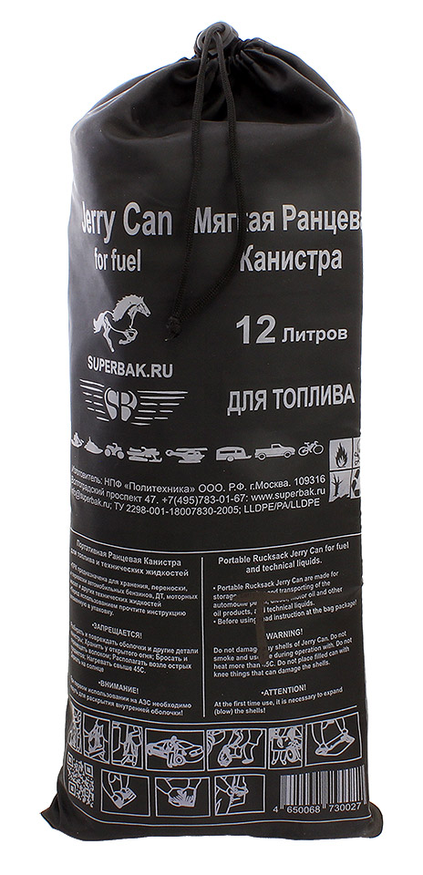 Компактная и легкая мягкая канистра для хранения и переноски топлива или воды. Состоит из внутренней герметичной полимерной емкости, теплоизоляционного материала марки Пенофол и внешней силовой тканевой оболочки. Имеет стропы для переноски за спиной.