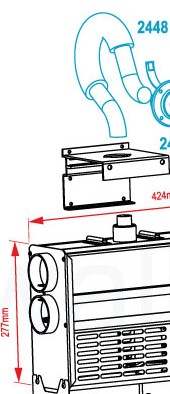 Полностью  автоматический автономный отопитель с регулируемой тепловой мощностью (также может использоваться в качестве вентилятора). Идеальное решение для судна с дизельным двигателем (нет необходимости иметь на борту второй вид топлива). Горение полностью автоматизировано – запуск и гашение осуществляется переключением тумблера. Встроенный подкачивающий насос обеспечивает бесперебойную подачу топлива из внешнего бака. Оборудован встроенной защитой от аварийного перегрева. Снабжен патрубком вывода горячего воздуха, который с помощью гибких металлорукавов может быть подведен в любое помещение судна на расстояние до 5 м. Длина выхлопного шланга может составлять 2 м. Отопитель практически бесшумен и может устанавливаться непосредственно в жилых помещениях судна. Характеристики: Габариты (ДхВхШ): 424х278х140 мм Монтаж: Напольный,настенный Топливо: дизель Мощность: 1000-2500 Вт Рабочее напряжение: 12 В Расход топлива: 0,1-0,25 л / ч Потребление электроэнергии: 0,7-1,2 А Циркуляция воздуха: 51-79 м? / ч Производитель: «Wallas Marin», Финляндия.