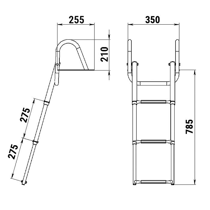 Кормовой телескопический трап с поручнем, имеющий черное противоскользящее покрытие.