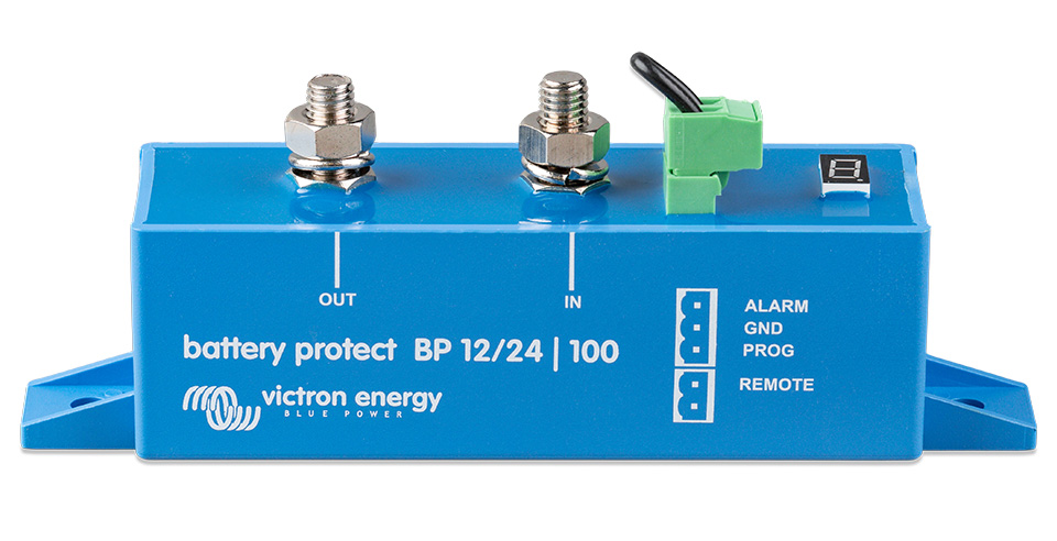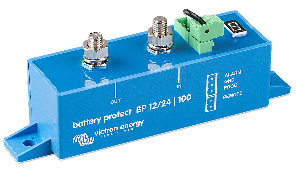Устройства для защиты аккумуляторных батарей от чрезмерного разряда. Отключают нагрузку при достижении напряжения аккумуляторной батареи заданного пользователем уровня, предохраняя, таким образом, батарею от повреждения, вызванного глубоким разрядом и(или) сохраняя в ней заряд, достаточный для запуска двигателя. Уровень напряжения отключения задается переключателями на корпусе устройств и отображается на дисплее. Совместимы как с традиционными свинцово-кислотными, так и с литиевыми батареями. Отличаются чрезвычайно низким собственным энергопотреблением. Обеспечивают защиту от перенапряжения - нагрузка будет автоматически отключена если напряжение на батарее по каким-то причинам поднимется до 16 В или 32 В (при номинале 12 В или 24 В). Возможность подключения световой или звуковой сигнализации о падении напряжения ниже заданного уровня (имеет 12-секундную задержку, таким образом кратковременное падение напряжения во время запуска двигателя не приведет к срабатыванию сигнализации). 1,5-минутная задержка отключения для предотвращения ложных срабатываний. Напряжение питания: 6-36 В. Максимально коммутируемый ток (продолжительно): 65, 100, 220 А. Максимально коммутируемый ток (в течение 30 секунд): 250, 600, 600 А. Потребляемый ток (нагрузка включена/нагрузка выключена): 1,5/0,6 мА. Уровень защиты: IP67. Производитель: "Victron energy".