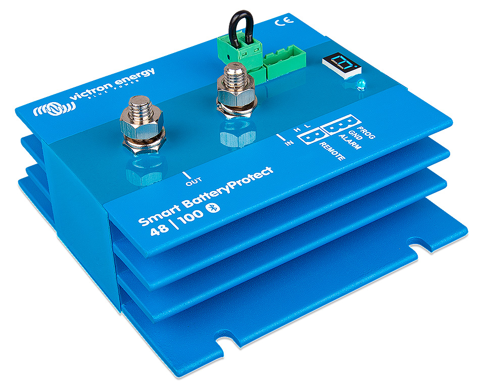 Устройства для защиты аккумуляторных батарей от чрезмерного разряда. Серия Smart Battery Protect отличается от серии Battery Protect наличием возможности программировать напряжение отключения со смартфона через Bluetooth (возможность программирования на корпусе устройство также имеется). Иные функции - те же. Устройства отключают нагрузку при достижении напряжения аккумуляторной батареи уровня, заданного пользователем, предохраняя, таким образом, батарею от повреждения, вызванного глубоким разрядом и(или) сохраняя в ней заряд, достаточный для запуска двигателя. Уровень напряжения отключения отображается на дисплее. Совместимы как с традиционными свинцово-кислотными, так и с литиевыми батареями. Отличаются чрезвычайно низким собственным энергопотреблением. Обеспечивают также защиту от перенапряжения - нагрузка будет автоматически отключена если напряжение на батарее по каким-то причинам поднимется до 16 В или 32 В (при номинале 12 В или 24 В). Возможность подключения световой или звуковой сигнализации о падении напряжения ниже заданного уровня (имеет 12-секундную задержку, таким образом кратковременное падение напряжения во время запуска двигателя не приведет к срабатыванию сигнализации). 1,5-минутная задержка отключения нагрузки для предотвращения ложных срабатываний.
