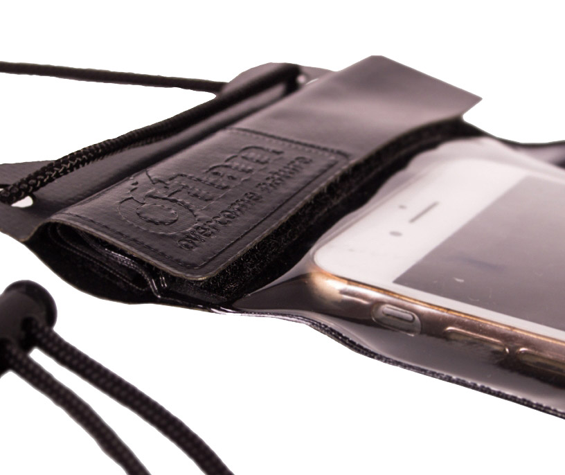 Достаточно завернуть верхний край на несколько оборотов и зафиксировать его на двойную застёжку "Велкро". Прозрачная вставка позволяет пользоваться смартфоном не вынимая его из чехла. Укомплектован шнурком с фиксатором для удобства переноски.