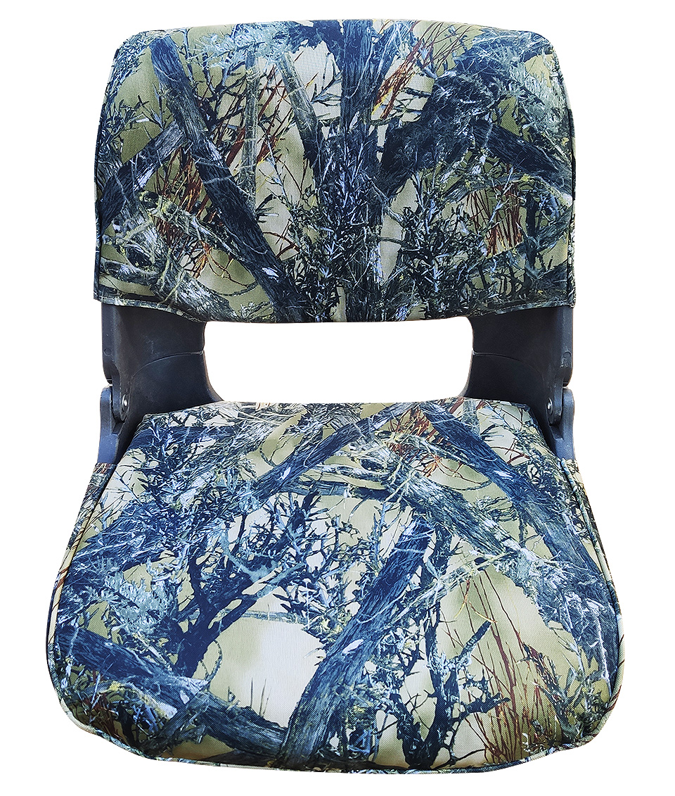 Мягкое сиденье с низкой складной спинкой. Обивка из винила, устойчивого к воздействию влаги и ультрафиолета и не впитывающего жидкостей.