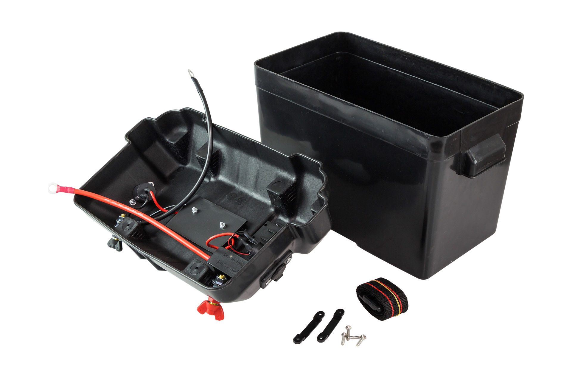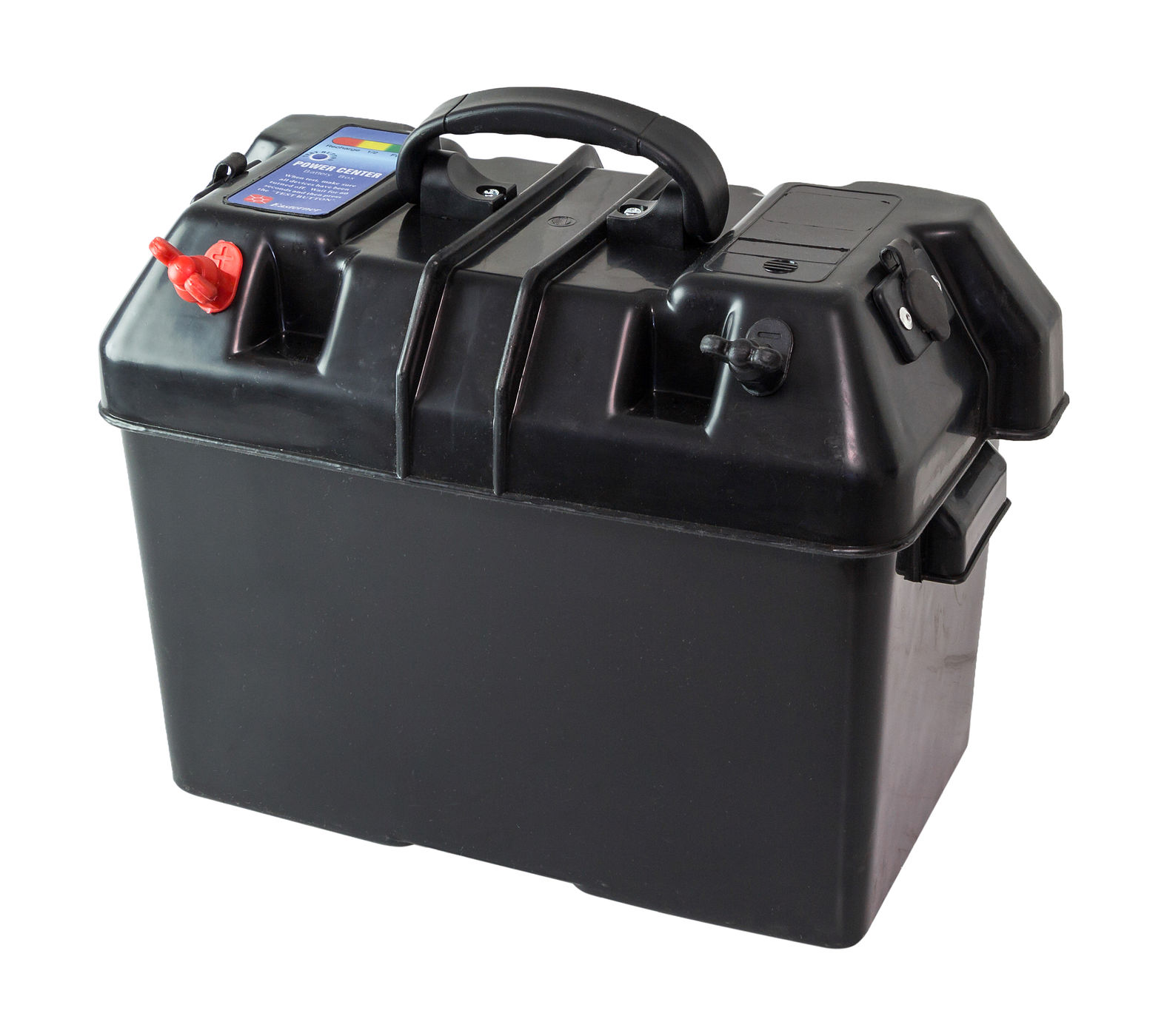Коробка для аккумуляторной батареи. Изготовлена из химически стойкой пластмассы. Предназначена для транспортировки, хранения и эксплуатации аккумуляторных батарей. Верхняя крышка оснащена ручкой для переноса, наружными клеммами, гнездом для прикуривателя и индикатором заряженности аккумуляторной батареи. В комплект поставки входит крепежный ремень с фурнитурой.