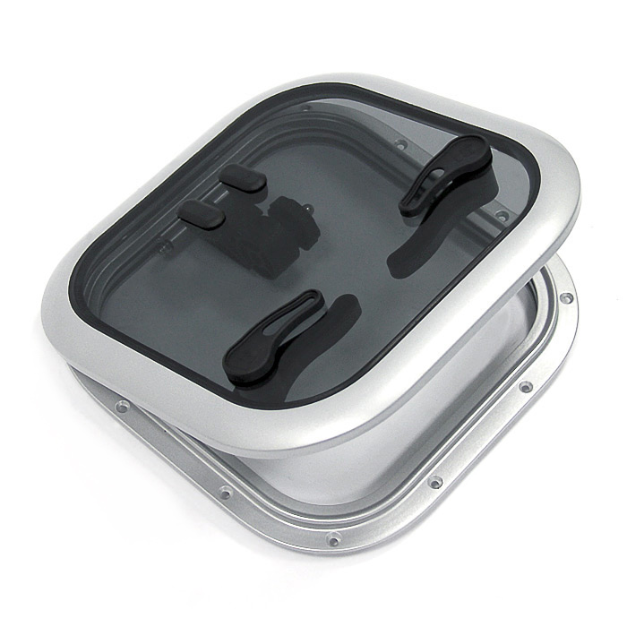 В конструкции люка используется безопасное, закаленое высокопрочное стекло толщиной 8 мм окрашенное по массе. Люк оборудован рычажным механизмом, который позволяет зафиксировать крышку в различных положениях.