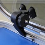 Механизм позволяет фиксировать крышку люка до 120° при помощи винтового фиксатора.