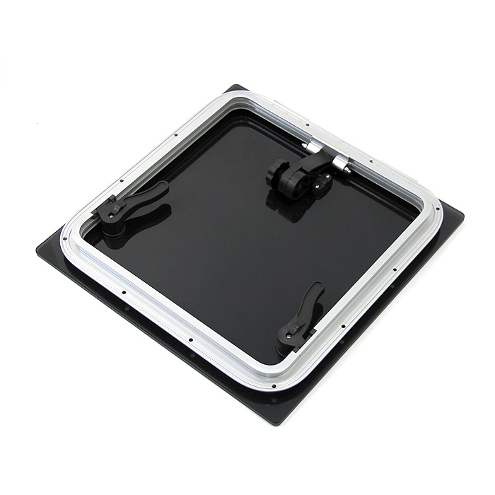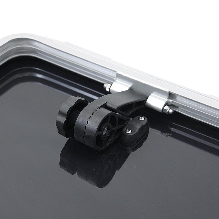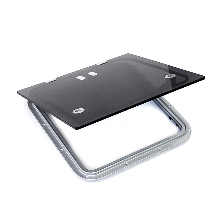 Установка люка производится заподлицо с палубой, поэтому он не имеет выступающих элементов. Крышка люка имеет рычажный механизм для возможности фиксации под углом до 120 градусов, а стекло толщиной 10 мм изготовлено из тонированного акрила.