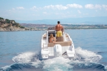 Next 220 SH — одна из семи моделей линейки Ranieri Sundeck (диапазон длин от5,65 м до 11,50 м). Это прочный катер из стеклопластика с центральной консолью,кокпитом и большой площадкой-солярием на длинном фордеке: эта зона длязагорания с мягким покрытием простирается от центральной консоли практически досамого форштевня (отсюда и название линейки Sundeck). Бушпритная площадка вносу с разрезным релингом -- продолжение высокого релинга вдоль борта -- удобнадля высадки на причал или необорудованный берег. Под ней на форштевне можетбыть закреплен якорь с автоматической отдачей; это опция, но перечень базовогооборудования довольно обширный.