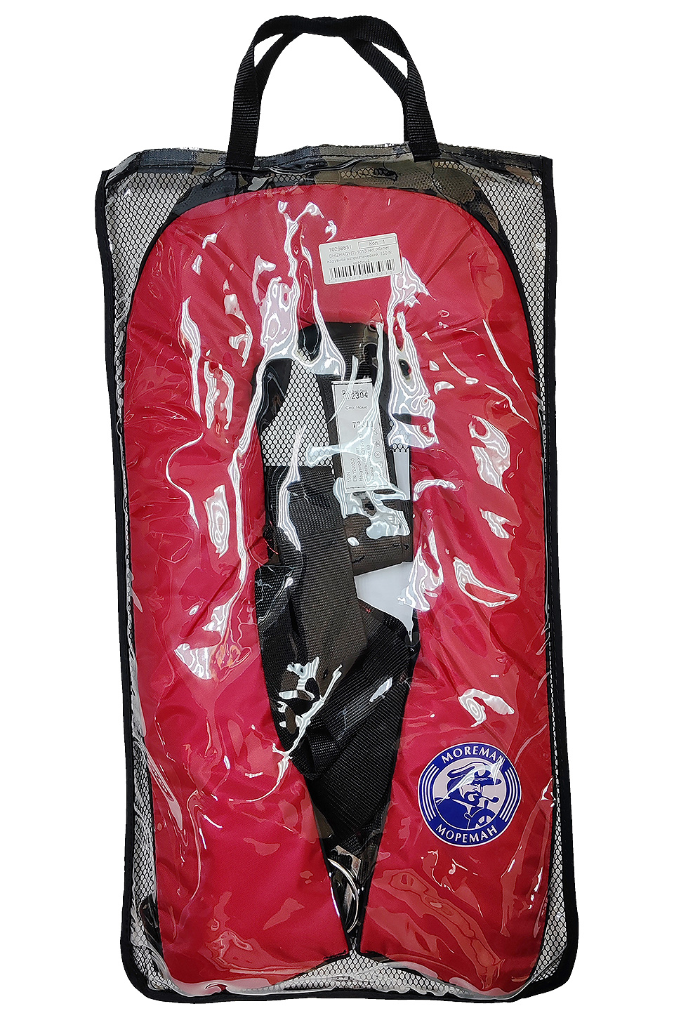 Надувной спасательный жилет "Мореман" автоматически раскрывается и наполняется газом при попадании в воду, также может быть активирован принудительно вручную. Снабжен паховыми стропами, необходимыми для того, чтобы при попадании в воду жилет не поднимался в верхнюю часть туловища и не давил на шею, затрудняя дыхание. В отличие от жилетов из вспененных материалов, надувной жилет не стесняет движений и не затрудняет теплообмен тела в жаркую погоду (дополнительная особенность: прилегающая к телу часть жилета выполнена из сетчатой ткани на мягкой подкладке, что позволяет телу дышать). В отличие от дешевых жилетов типа "конвертик", отличается комфортным кроем, что делает жилет более удобным для длительного ношения. Полиэстеровый чехол-подкова красного, синего и черного цветов предохраняет надувную камеру от повреждений. Нашивка "Мореман" на чехле жилета - светоотражающая. Надувная камера ярко-оранжевого цвета имеет подковообразную форму, что способствует удержанию головы человека лицом вверх, что очень важно если попавший в воду по каким-то причинам теряет сознание. Жилет оснащен аварийным свистком, надежной застежкой-пряжкой из нержавеющей стали, страховочным поясом с D-образным кольцом для крепления страховочного линя (не требуется приобретение отдельной страховочной обвязки!) и светоотражающими нашивками. Имеется трубка для аварийного надувания жилета ртом.