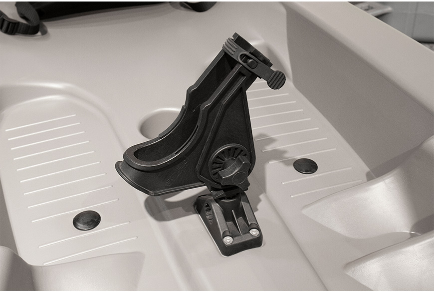 Держатель для удочки вращается на 360 градусов и может свободно менятьнаправление. Удочку можно закрепить с помощью фиксированного ремешка.