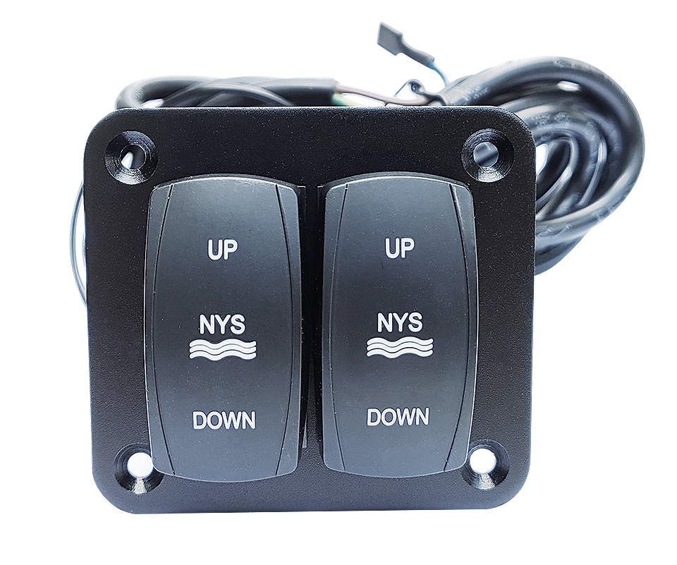 Комплект транцевых плит. Включает две  транцевых плиты из нержавеющей стали, два электро-механических привода, реле нагрузки и панель управления.