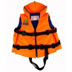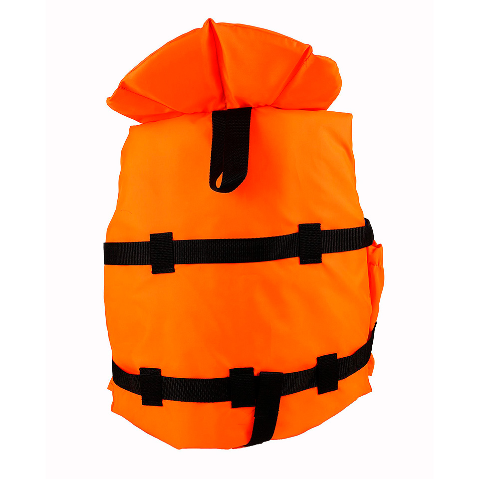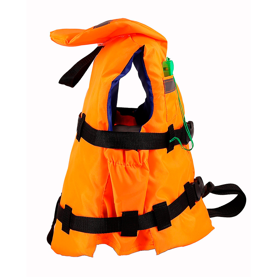Спасательный универсальный жилет, рассчитан на вес до 50 кг с подголовником и светоотражающими элементами.