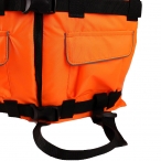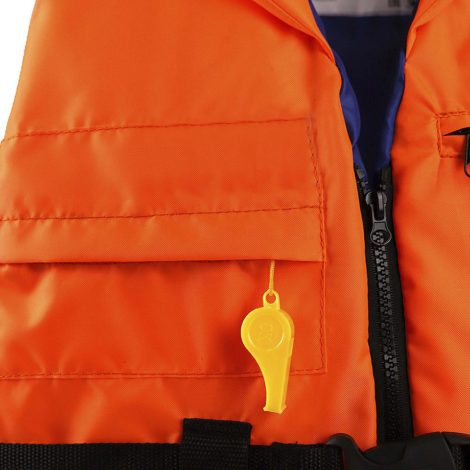 Спасательный жилет, выполнен в ярком оранжевом цвете, который будет хорошо заметен для спасателей на большой дистанции.