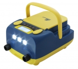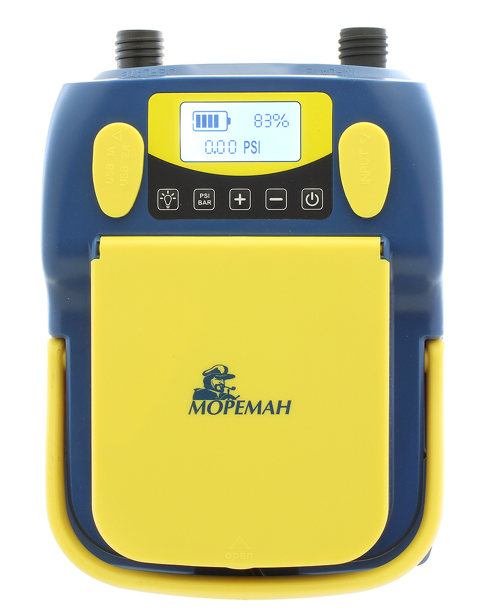 Высокопроизводительный воздушный насос со встроенным аккумулятором. Цифровое управление – настройки отображаются на ЖК-экране. Встроенный литиевый аккумулятор без эффекта памяти (6000 мАЧ). Возможность зарядки от сети переменного тока напряжением 220 В (адаптер в комплекте) или от источника постоянного тока напряжением 12 В (провод со штекером под гнездо прикуривателя в комплекте). В последнем случае (от сети 12 В) насосом можно продолжать пользоваться даже во время зарядки. Два USB-выхода для питания или зарядки любых совместимых устройств. Встроенный яркий светодиодный фонарик. Насос развивает давление до 1,1 Бар, что позволяет накачивать любые надувные изделия, включая лодки с пайолами высокого давления, SUP-доски и кайты. Необходимое давление выбирается пользователем и отображается на дисплее, по достижении заданного давления насос автоматически отключится. Легкий выбор единиц измерения – Бар или PSI. Может использоваться как для накачивания надувных изделий, так и для удаления из них воздуха. Встроенный отсек для хранения проводов и сумка для переноски в комплекте.