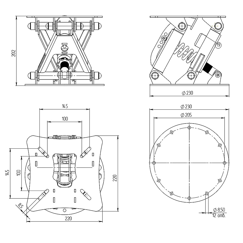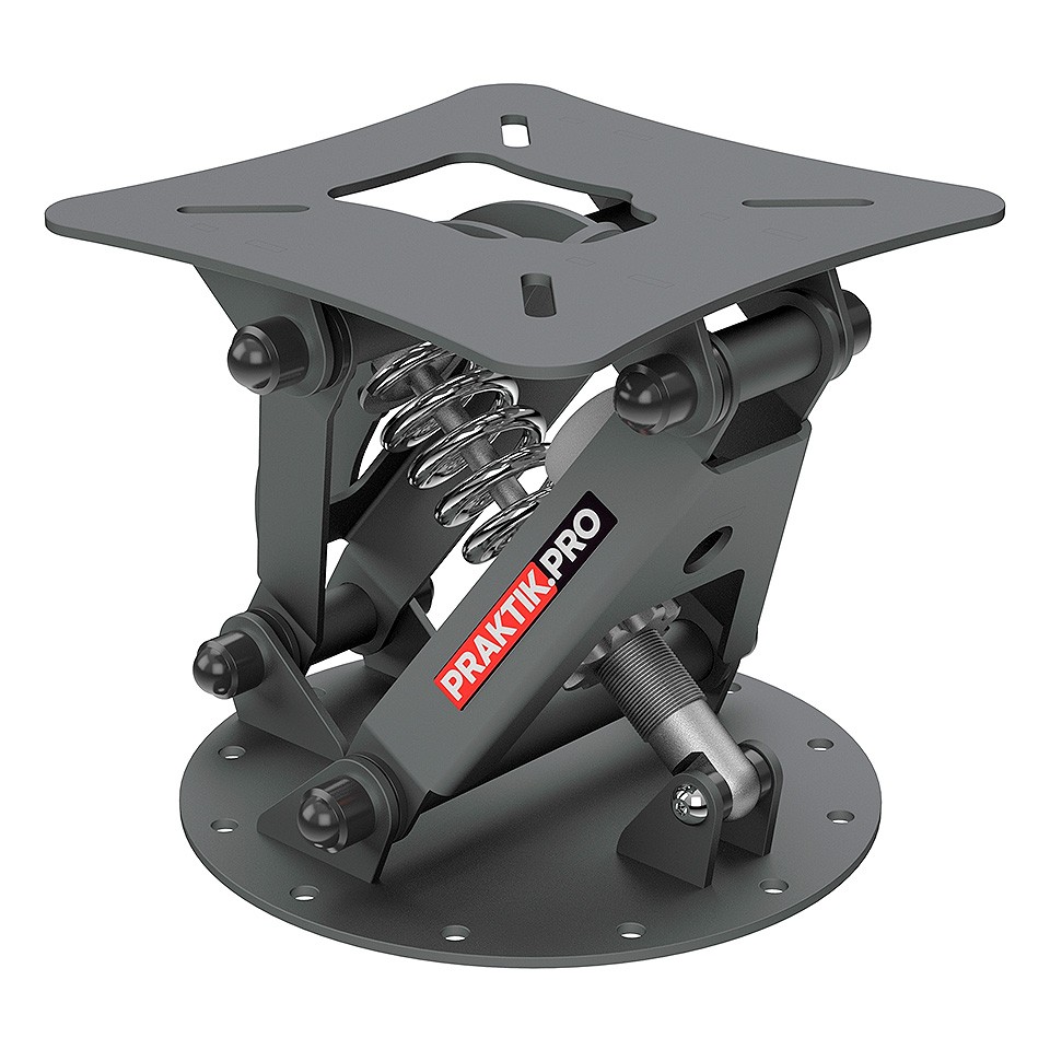 Стойка самортизатором выполнена из высокопрочной оцинкованной стали. Амортизатор срегулируемой жесткостью. Представлены варианты с салазками, позволяющимирегулировать сиденье в горизонтальной плоскости и без салазок.