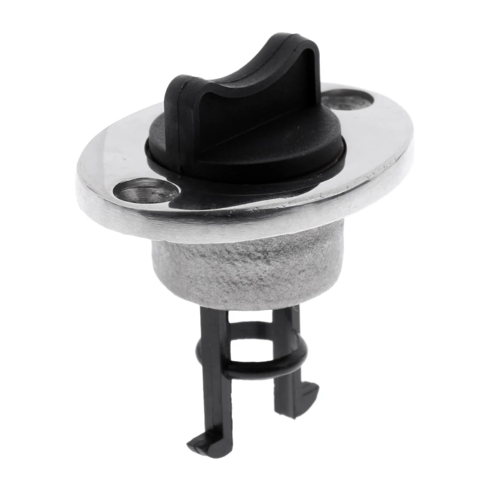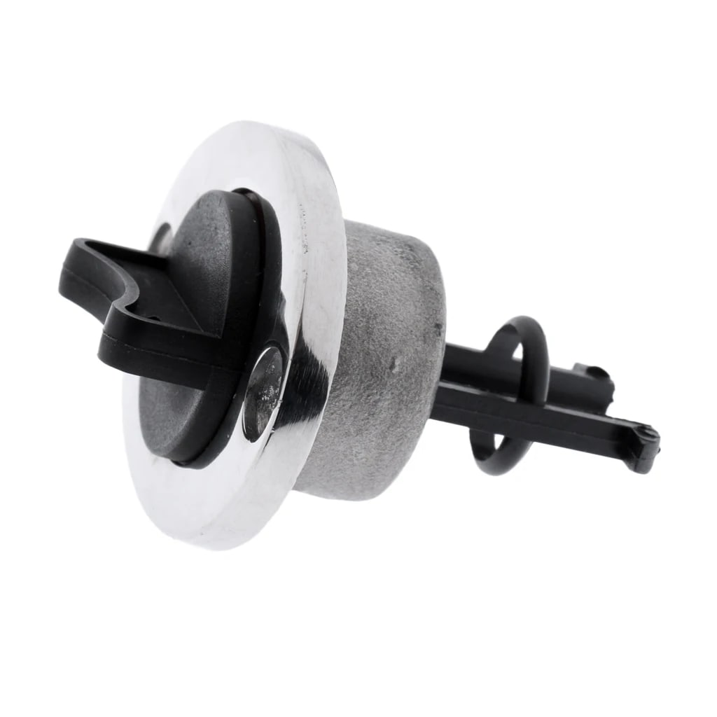 Пробка в сборе из нержавеющей стали, с резиновым кольцом уплотнения. Может использоваться на надувных и пластиковых судах. Пробка имеет стопоры для фиксациив открытом положении.