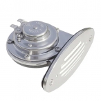 Горн электро-механический врезной высокий тон. Изготовлен из нержавеющейстали. Устанавливается в корпус катера. Комплектуется защитной решеткой суплотняющей прокладкой, 2-мя нержавеющими шурупами и проводом для подключениядлиной 30 см.