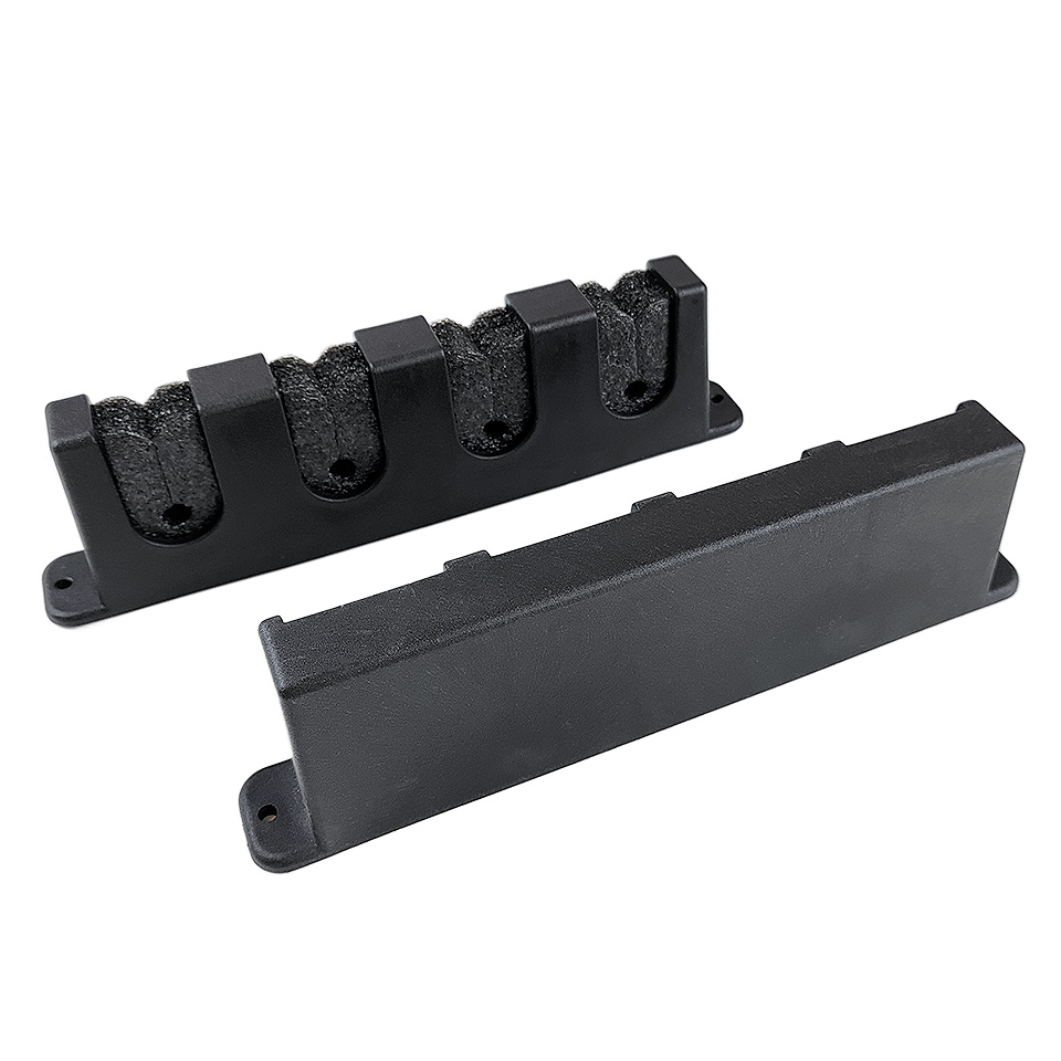 Неопреновый держатель удилищ на 4 гнезда. Это кронштейны из пластика и неопрена для крепления удилищь в походном положении. Мягкие вспененные неопреновые вставки надежно закрепляют удилище, не повреждая его.