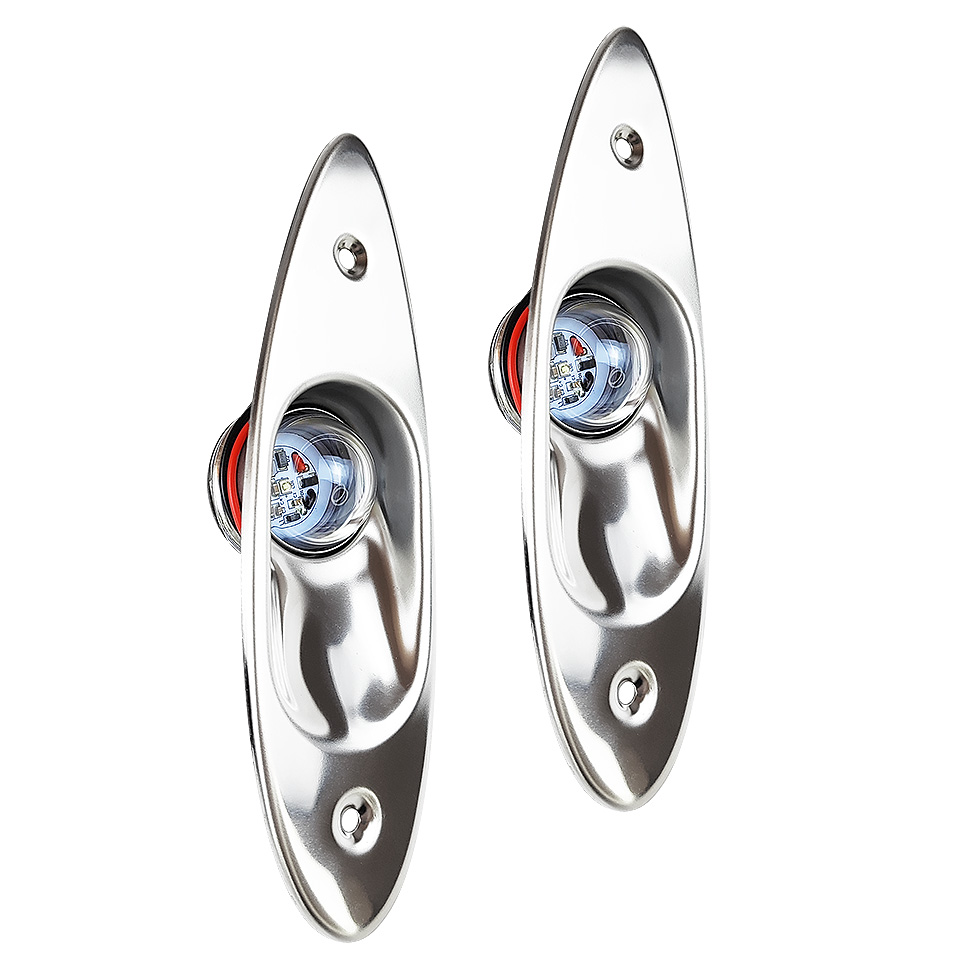 Бортовые навигационные огни красный и зеленый. Обеспечивают освещение секторов с углом в основании 112,5 градусов. В корпусе из нержавеющей стали с резиновыми прокладками. Светодиодный.