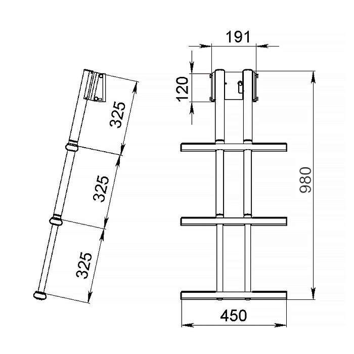 Дайверский трап телескопический предназначен для установки на вертикальнуюповерхность плавсредства.