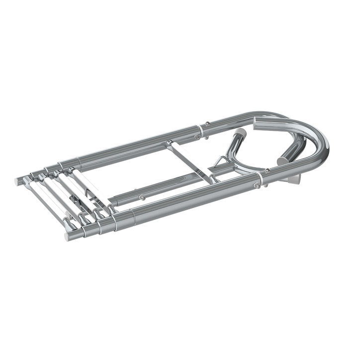Трап телескопический оборудован подвижными крюкообразными кронштейнами длякрепления на леер плавсредства и раздвижным упором для установки на носовуючасть судна.