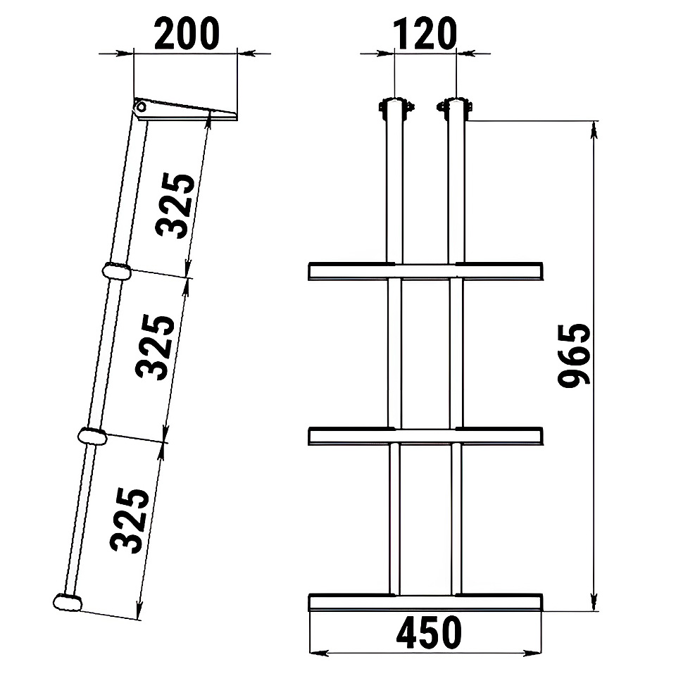 Трап дайверский телескопический складного типа предназначен для установкина горизонтальную поверхность кормы плавсредства.
