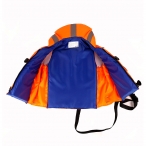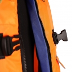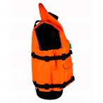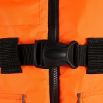 Спасательный жилет, выполнен в ярком оранжевом цвете, который будет хорошо заметен для спасателей на большой дистанции.