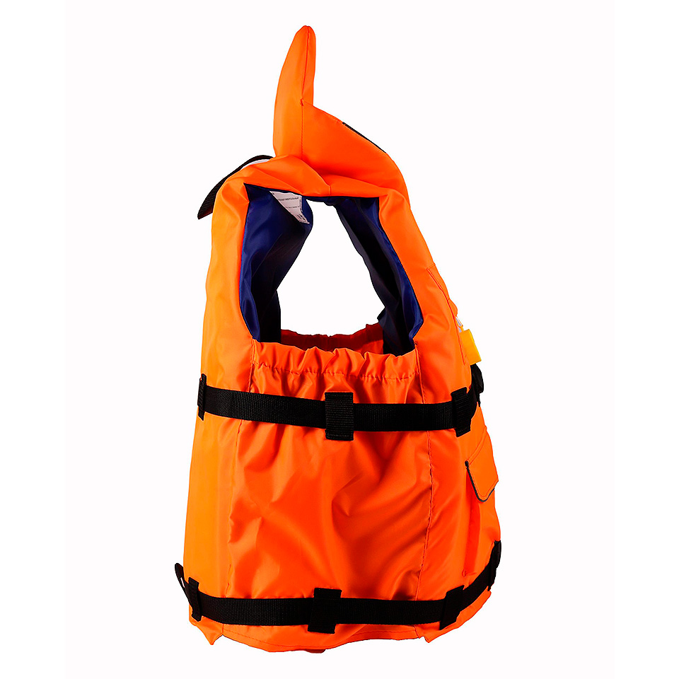 Спасательный жилет, выполнен в ярком оранжевом цвете, который будет хорошо заметен для спасателей на большой дистанции.