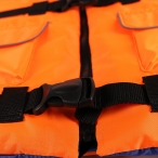 Спасательный жилет, выполнен в ярком оранжевом цвете, который будет хорошо заметен для спасателей на большой дистанции.