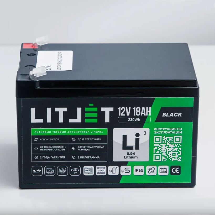 Литий железо-фосфатный аккумулятор(LiFePO4) тяговый LITJET BLACK имеет напряжение 12 вольт, предназначен дляработы в глубоких циклах разряда и заряда. Не может быть использован длязапуска ДВС. Относится к тяговымаккумуляторам.