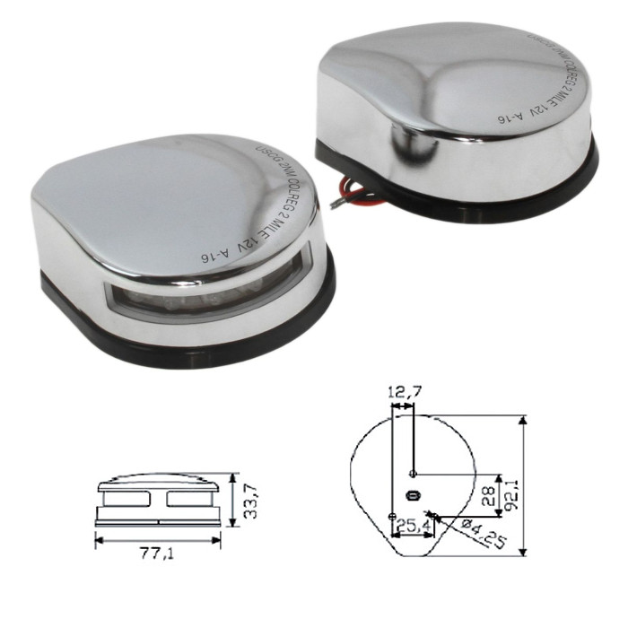 Комплект светодиодных ходовых огней в пластиковом корпусе, покрытым оболочкой из нержавеющей стали и черной резиновой прокладкой.